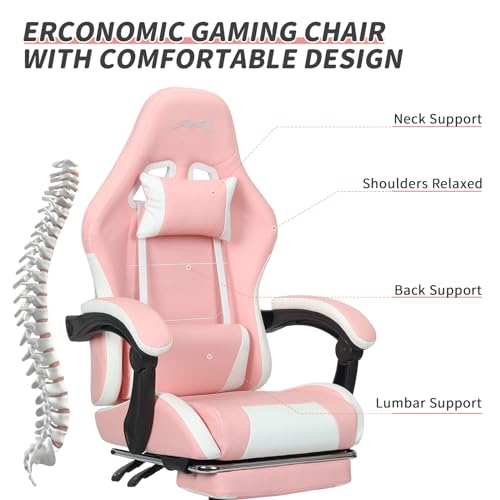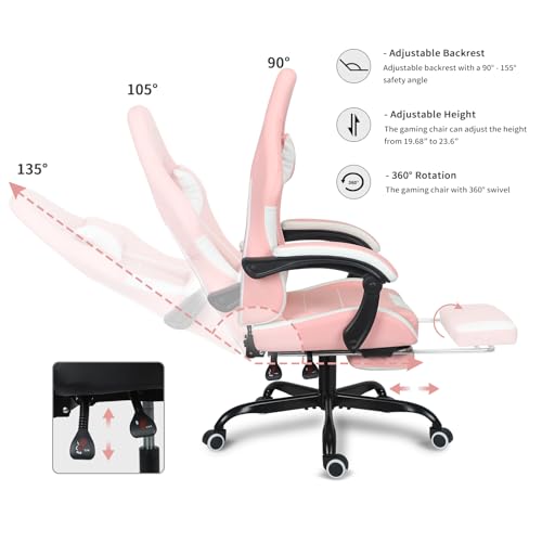Specification: Leopard Gaming Chair with Footrest, Height Adjustable Game Chair with Lumbar Support, Video Gaming Chair for Gaming Room, Living Room and Office – Pink/White