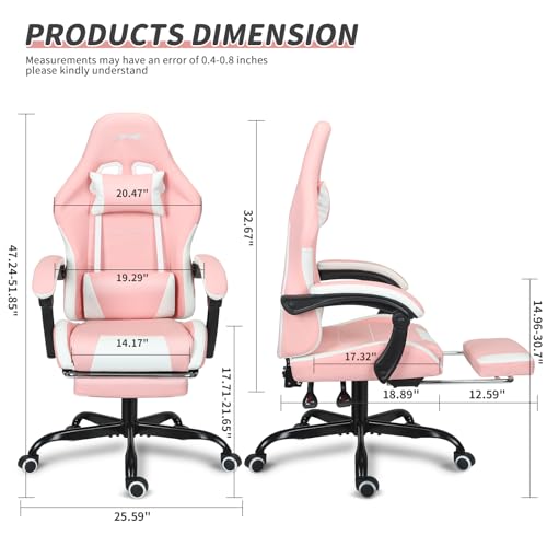 [ Dimension ] The dimension of the gaming chair is about 19.3″L x 17.3″D x 17.7″-21.6″ (from floor to seat cushion); Wide and spacious, this chair is ideal for use in the living room, bedroom, game room, or office, offering ultimate relaxation and support