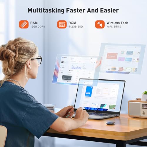 【16GB RAM & 512GB ROM】Equipped with 16GB of DDR4 RAM and a fast 512GB M.2 SSD, this windows laptop delivers up to 50% better performance than DDR3 models, ensuring smooth system operation and efficient handling of personal files. It also supports storage expansion via a 128GB TF card, and the 512GB SSD can be upgraded to a maximum of 2TB, providing ample space for all your files and favorites.
