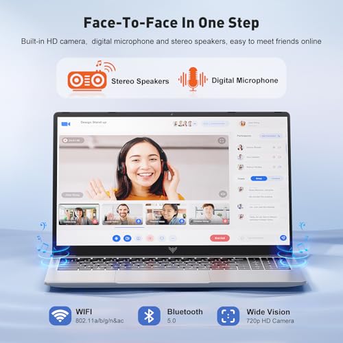 【Enhanced IPS Viewing Experience】Experience stunning visuals on the 15.6-inch thin-bezel display, which offers an expanded screen area for a more immersive Full HD experience. The slim design fits a larger screen into a more compact body, making the laptop sleek and portable. A front-facing webcam, perfectly centered above the screen, ensures convenient access for photos and video calls anytime.
