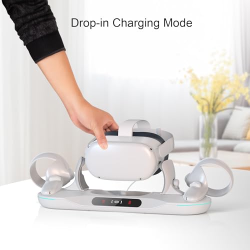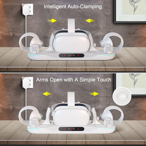 Intelligent Auto-Clamping: The charging dock can keep powered up with convenient drop-in charging, and it automatically clamps your Oculus Quest 2 when charging, providing convenience and stable charging mode. Plus, its arms open with a simple touch on the dock button.