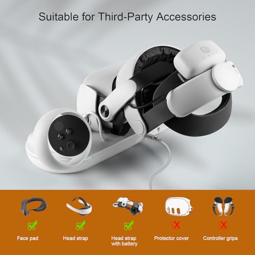 Suitable for Third-Party Accessories: The charging dock works with Meta Quest 2 with its accessories, including the third-party face pad, head strap, head strap with battery.