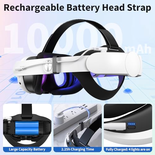 Specification: Younik Battery Head Strap for Quest 3, 10000mAh Rechargeable Battery, Adjustable Head Strap for Quest 3 Comfy Head Cushion to Reduce Head Pressure, Fast Charging Quest 3 Head Strap for Adults Kids